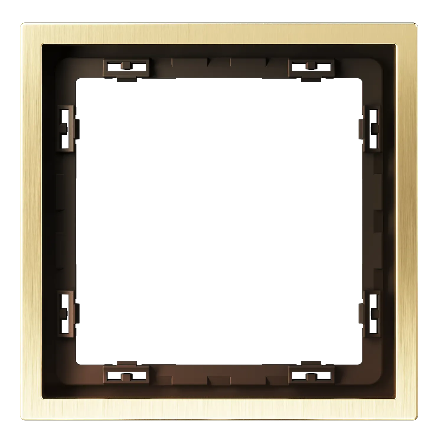Рамка изготовлена методом точного литья цинкового сплава под давлением — это гарантирует идеальную геометрию и отсутствие внутренних дефектов. Сверху нанесено многослойное гальваническое покрытие цвета «латунь»: