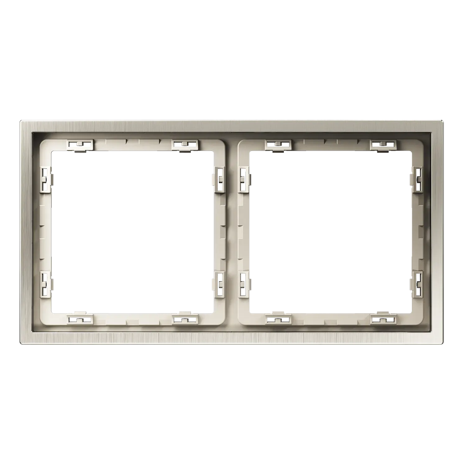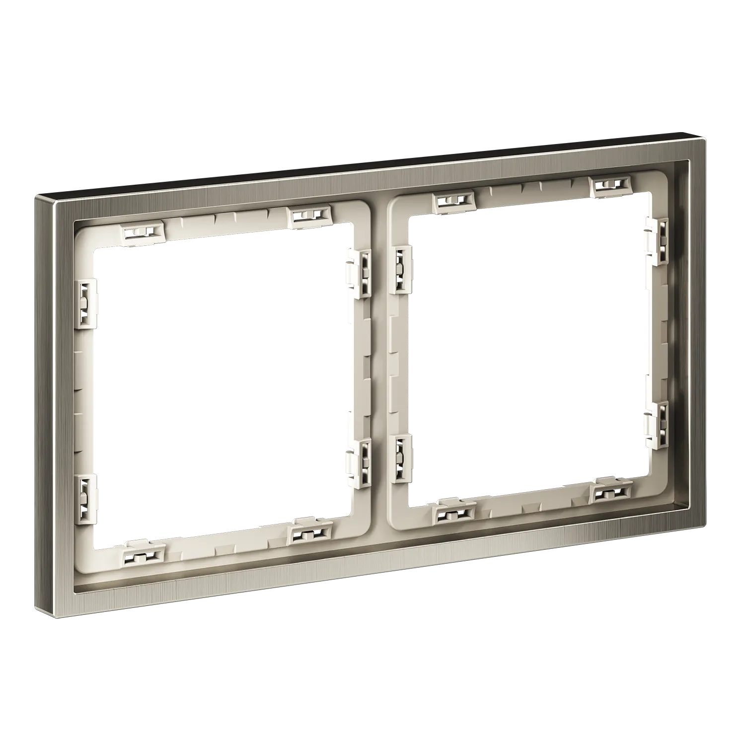 Все элементы в цвете «никель» формируют непрерывную линию без визуальных разрывов. Смотрите также рамки цвета «платина» для холодной элегантности или «латунь» для тёплых интерьеров с характером.