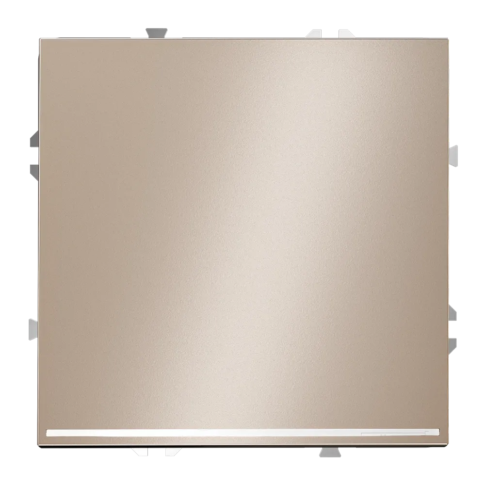 Платина добавляет интерьеру вневременной утончённости: она подчёркивает текстуру стен, дерева и натуральных материалов, не перетягивая на себя внимание. Выключатель становится элементом заботы о повседневном комфорте без потери эстетики.