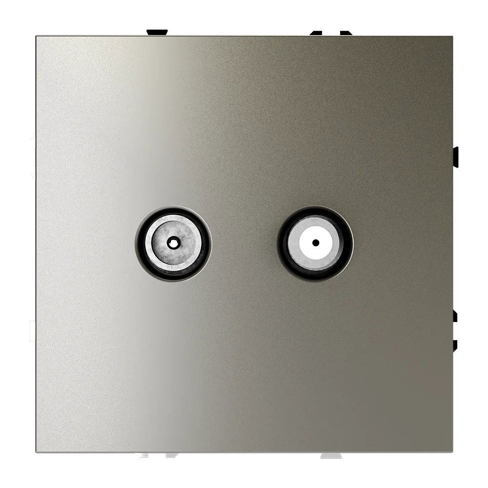 Розетка выполнена по оконечной схеме, что обеспечивает корректную передачу сигнала в системах коллективного телевидения и предотвращает помехи и отражения. Благодаря двум разъёмам в одном корпусе вы можете подключить как эфирное/кабельное ТВ, так и спутниковый ресивер — всё в одном компактном устройстве.