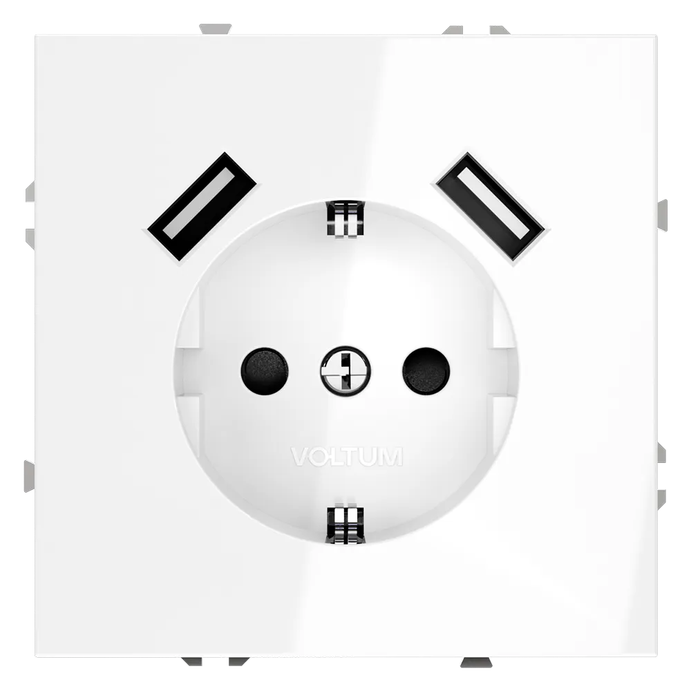 Розетка встраиваемая VOLTUM S70 с заземлением и защитными шторками 16А с USB A+A (белый глянцевый)